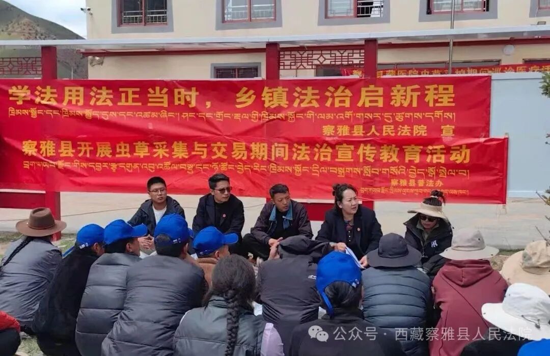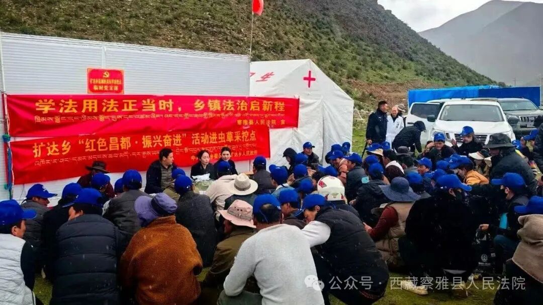 察雅县人民法院将“法官包乡镇”作为基层普法的核心抓手,组建多个法宣小组深入基层一线,实现司法资源下沉、服务前移。在虫草采挖季等生产关键期,开展专项普法行动,把法律服务送到帐篷、田间与虫草山,通过人员固定、责任清晰、响应灵活的工作模式,推动服务从“接诉即办”向“未诉先办”转变。非农忙时节,依托固定联系点开展“法治体检”,精准摸排群众法律需求,通过面对面普法答疑,讲解诉讼流程、指引法律援助渠道,同时派驻干警协助村“两委”开展法治培训,培养基层“法律明白人”,提升基层矛盾纠纷化解的法治能力。