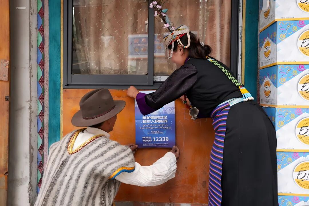 宣讲结束后,宣讲小组组织夏尔巴群众共同参与张贴国家安全宣传海报、悬挂宣传横幅等活动。