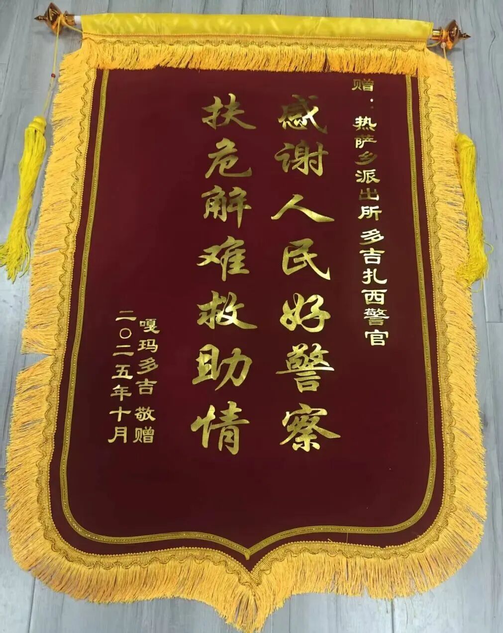 拉孜公安暖心救援 群众寄赠锦旗致谢