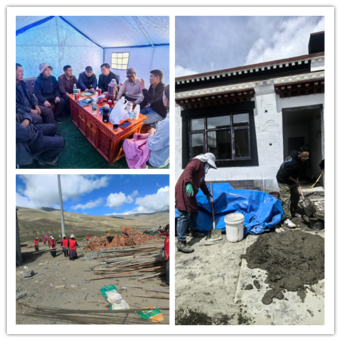 普玛村、白色村、帕列村、普村共涉及灾后重建项目统规统建60户,统规分建252户,维修加固153户。在推进灾后重建工作中,各驻村工作队坚持党建引领,按照麻布加乡党委关于“支部建在项目上、党旗插在工地上”的工作要求,四个驻村工作队通过设立“帐篷临时党支部”、组建党员与群众志愿者服务队等方式,组织党员与群众在施工现场提供建筑材料搬卸、工地垃圾清理、安全隐患排查等志愿服务,并全面参与施工安全监督和地基浇筑、主体结构完工等环节验收工作,积极为村民群众早日搬进重建新房提供有力保障。