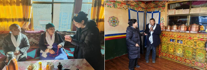 德吉卓嘎一行分别深入9户结对帮扶户的家中,面对面向群众宣讲党的二十届四中全会精神,详细了解群众的家庭收入来源、子女学习就业、生产生活等情况,引导群众要深刻认识西藏经济社会发展取得举世瞩目的重大成就,雪域高原发生翻天覆地的变化,自觉感党恩、听党话、跟党走,持续铸牢中华民族共同体意识,紧跟党和国家好政策,用勤劳双手创造美好生活,并要求驻村工作队持续关注他们的情况,尽力帮助解决群众的急难愁盼问题。为他们逐一送上慰问金和哈达。