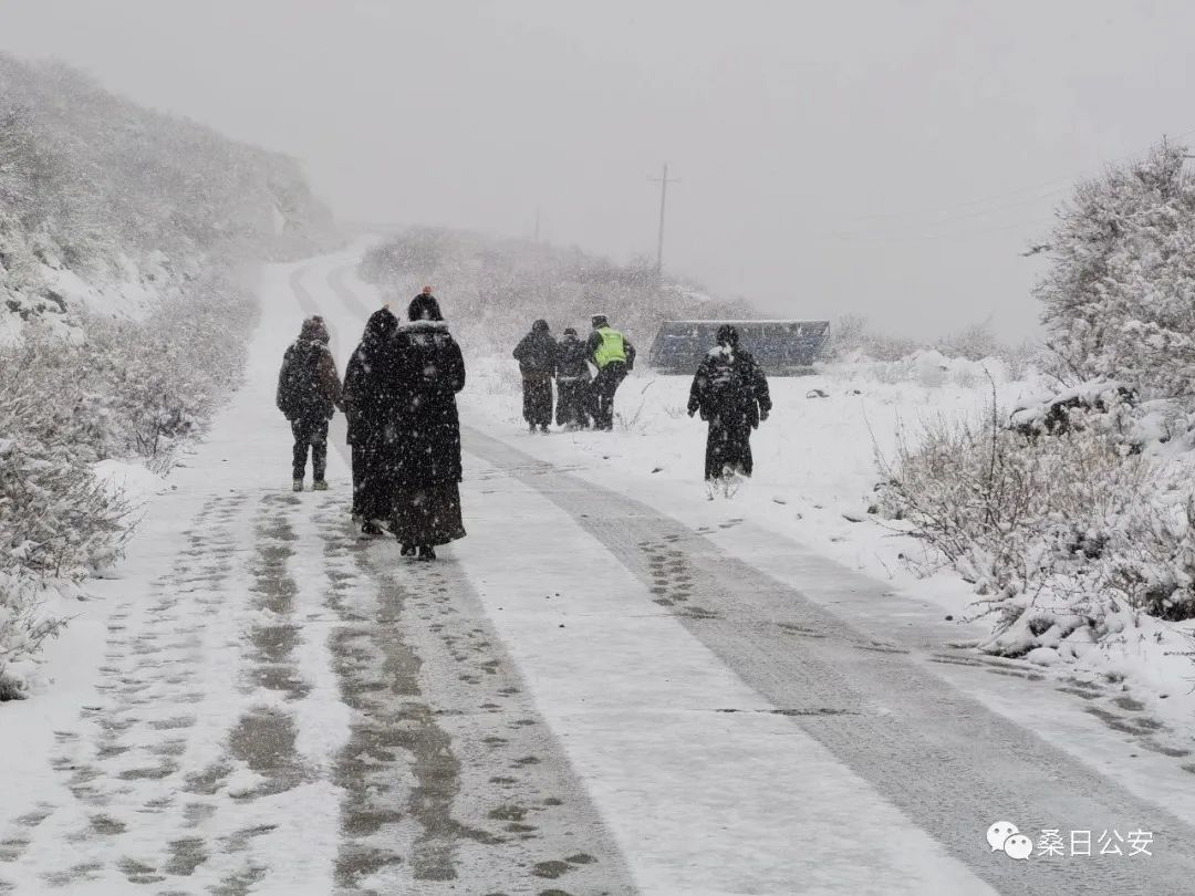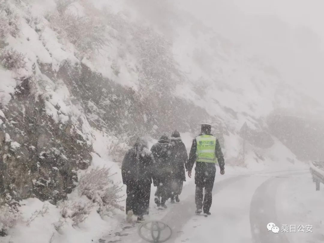 得知丹萨梯寺有6辆车、30余名群众被困。桑日县公安局民辅警以雪为令,迅速组织警力赶赴现场,紧急救援。在海拔近4500米,且蜿蜒陡峭、暗冰潜伏的盘山公路上,警车多次出现打滑,险些冲出路面。“不到9公里的路程,却用了近15分钟才到达,我在车上都快急死了。”仁青多吉说。