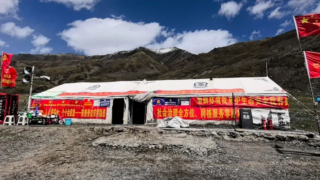 平均海拔4000米以上的雪域高原,虫草采集季既是农牧民群众收入的“黄金期”,也是风险高发期。极端天气突袭、雷电威胁、野生动物侵扰……采集群众在险峻环境中与自然博弈,只为一家人的“生计希望”。那曲市比如镇派出所副所长阿尼有着丰富的临时警务室驻点经验,他谈起每年春夏之交那两个月,总是非常难忘:“我们镇有10个虫草采集点,每个采集点都设置了临时警务室,派1-2名公安同志驻守,负责日常治安巡逻、交通秩序管理、自然灾害救援、法治宣传等工作,和来自乡镇政府、法庭、司法所等单位的10名同志组成工作队住在一个大帐篷里,这个帐篷就是虫草采集季维持秩序的核心枢纽。”每个虫草采集点都成立了临时党支部,实行“支部成员包片-党员包帐篷-联户长包户”的服务管理模式,确保仔细检查,杜绝每一处安全隐患。工作队每天开展不定时巡逻,白天守护大本营的财产安全,晚上还要防范棕熊闯入威胁人身安全。“我们会经常提醒群众不要把生活垃圾放在帐篷外面,因为棕熊经常下山翻垃圾桶寻找食物。”阿尼副所长说。