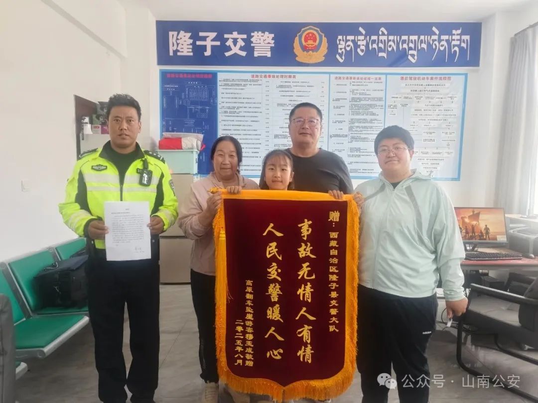 “没有你们的帮助,我的命就交代在这里了!”近日,穆先生专程从北京来到西藏山南隆子县公安局交警大队,紧紧握住民警的手,眼含热泪将写有“事故无情人有情、人民交警暖人心”的锦旗和感谢信送到民警手中。